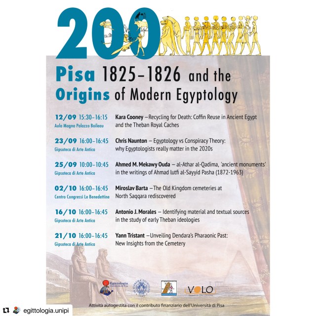 Not long afterwards I was invited to give a lecture in Pisa as part of the celebration of the 200th anniversary of the first Egyptology class to be given in a university – in Pisa by Ippolito Rosellini in 1825. The organiser, Professor Gianluca Miniaci, had asked for something touching on one or more of the following themes: