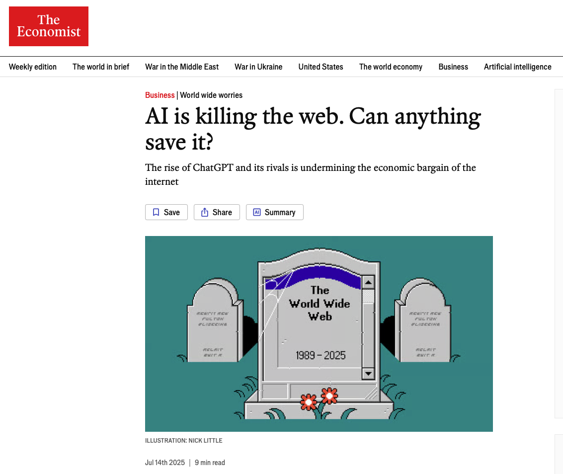 4. ‘AI is killing the web. Can anything save it?’ The Economist, 14 July, 2025
