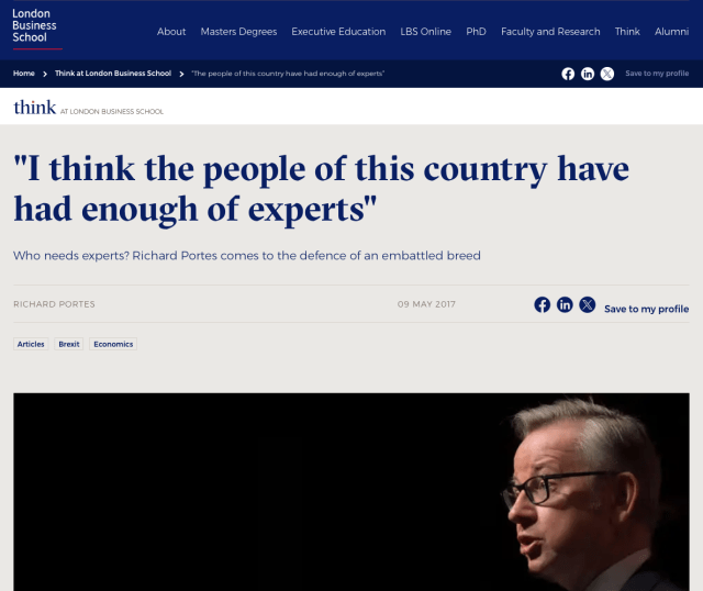 I quoted the response of Richard Portes, Professor of Economics at the London Business (‘Who needs experts?’) to this phenomenon: