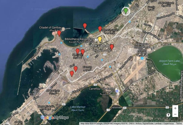 An image from my Google map of the key sites in Alexandria
