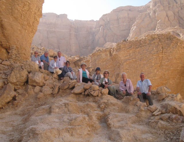 Steve (far right) leading a group on a geological tour of the Theban wadis in 2014. Photo courtesy of Janet Shepherd.