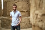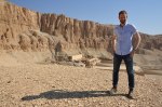 At Deir El Bahri with the temple of Hatshepsut behind me, during the filming of Mummies Alive, August 2014