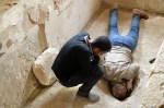 Photographing reliefs in the tomb of Horemheb, Saqqara, May 2013
