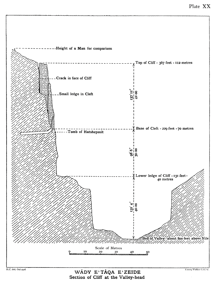 Carter’s section drawing showing the extraordinary location of the tomb of princess Hatshepsut, as published in JEA.