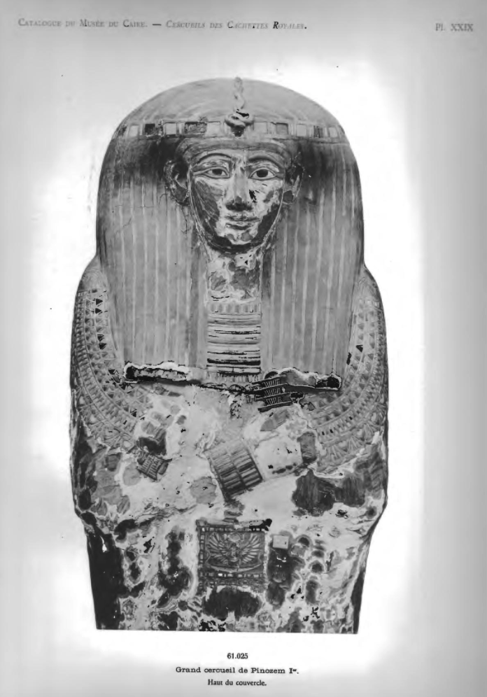 The outer coffin of Pinudjem I as it appears in Daressy’s volume