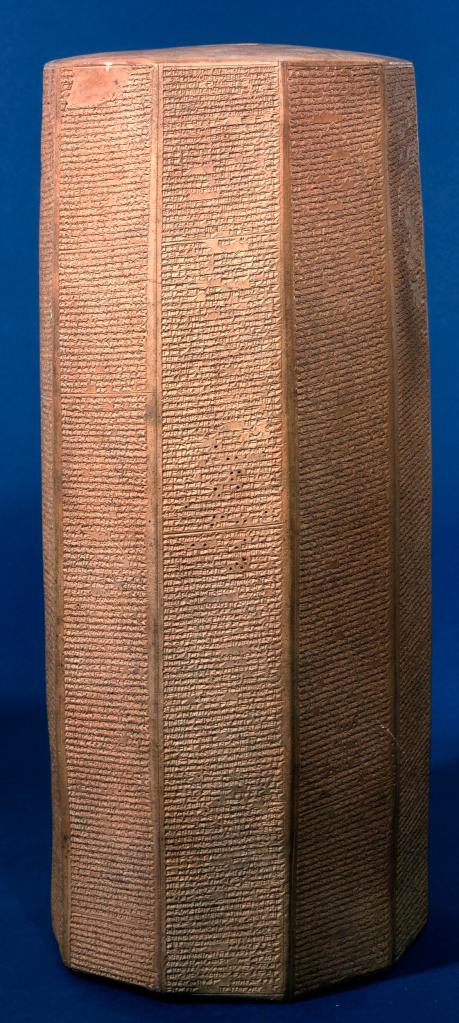 I began my talk with an image of the Rassam Cylinder which is in the collections of the British Museum. More info on this is available here. The translation of the text comes from Pritchard, J B (Ed.), Ancient Near Eastern Texts Relating to the Old Testament.