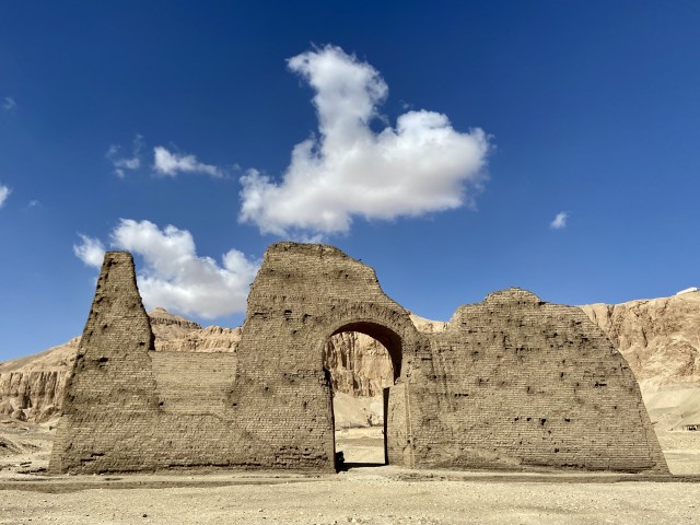 The larger mudbrick pylon of the tomb of Montuemhat.
