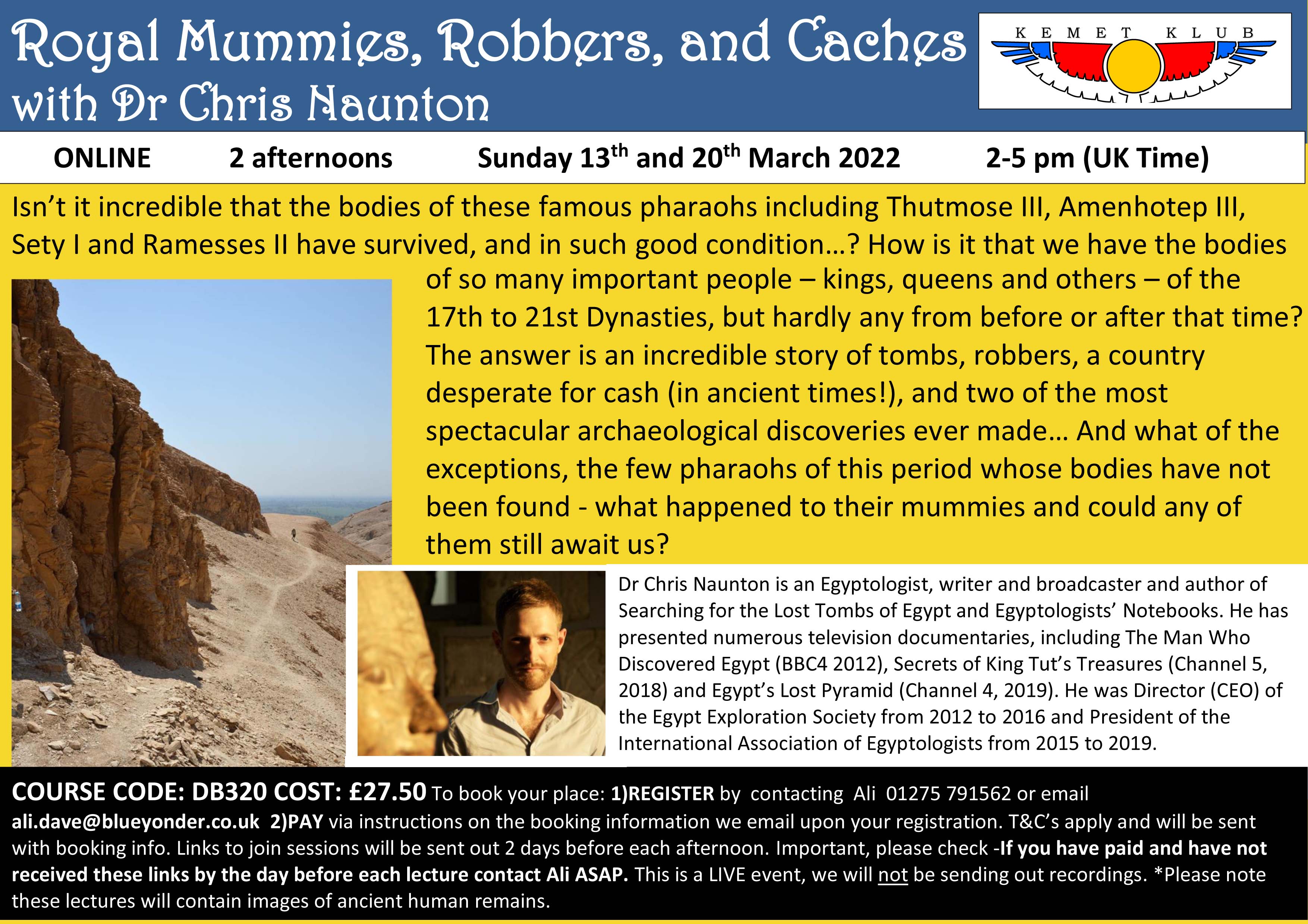 For further info or to book see https://kemetklub.co.uk/product/egypts-dazzling-sun-kings/