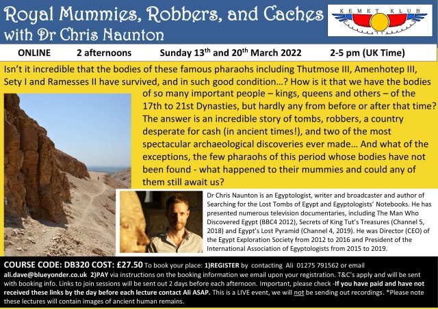 For more info / to book: https://www.eventbrite.co.uk/e/dr-chris-naunton-the-royal-mummies-online-only-tickets-530806816477?aff=erelexpmlt