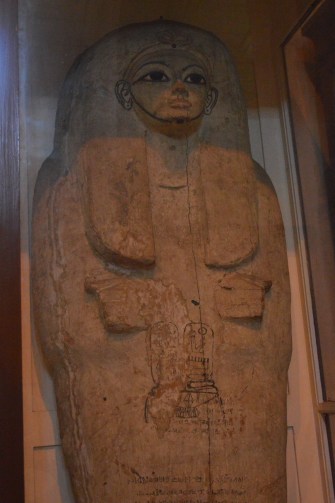 Coffin of Sety I in the Egyptian Museum, with a ‘docket’ inscription visible beneath the hands