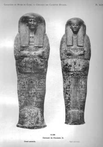 The coffins of Pinudjem II as they appear in Daressy’s volume