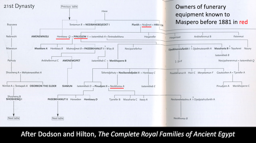 The family tree of the Twenty-first Dynasty kings in Tanis and Chief Priests in Thebes, as it appeared in my slides. After Dodson and Hilton, The Complete Royal Families…