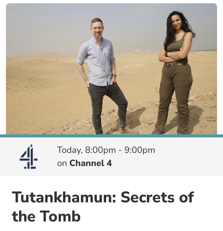 I was the consultant for, and made a few brief appearances in, this two-part series presented by Ella Al-Shamahi and originally broadcast to coincide with the centenary of the discovery of Tutankhamun’s tomb. It’s currently available online for viewers in the UK here.